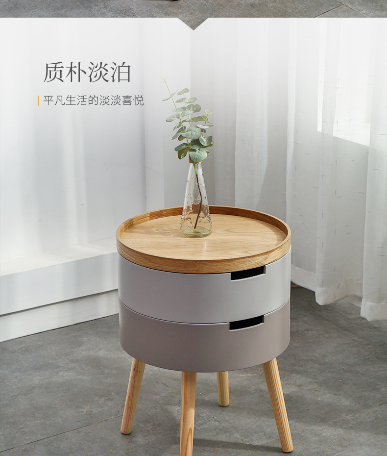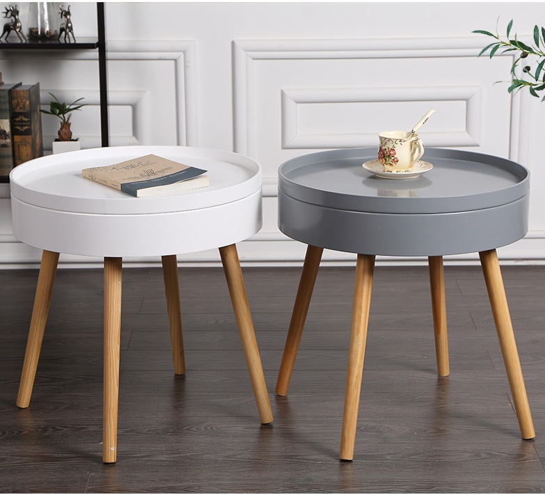 Mesa de centro y mesa auxiliar de bandeja de forma redonda personalizada al por mayor de China con almacenamiento de un solo cajón
